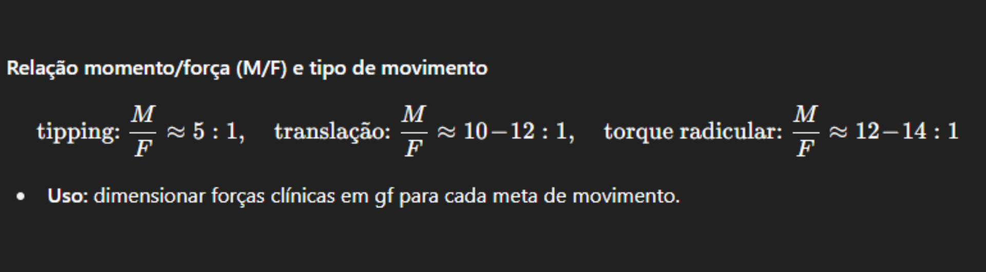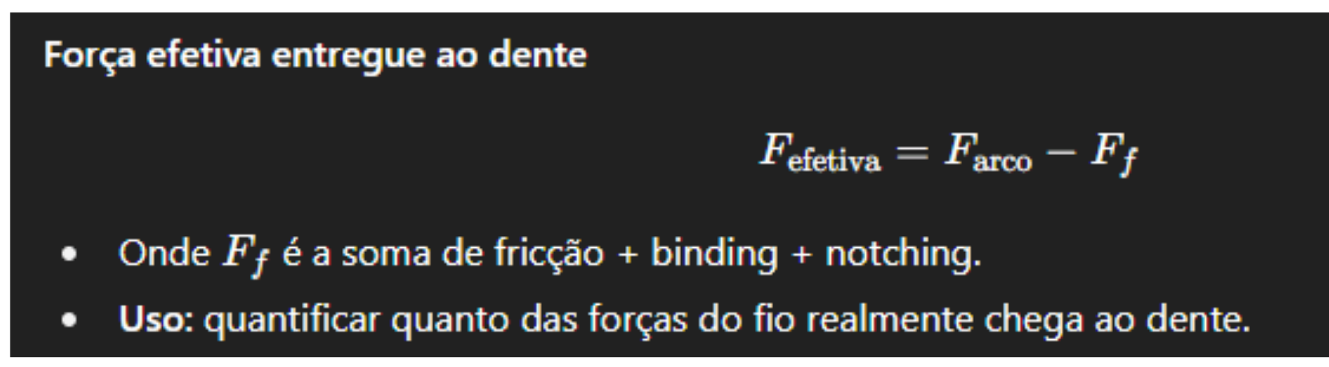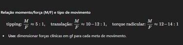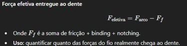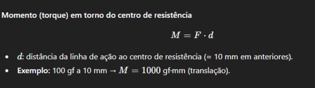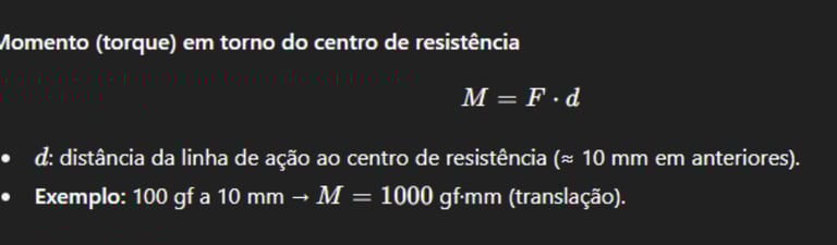 A mecânica com brackets busca distribuir essas forças com bons M/F e mínimo atrito/binding para chegar no movimento planejado.