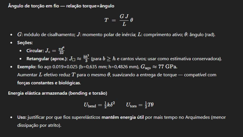 Isso explica por que fios superelásticos mantêm força constante por mais tempo, especialmente em sistemas de baixo atrito como o Arquimedes.