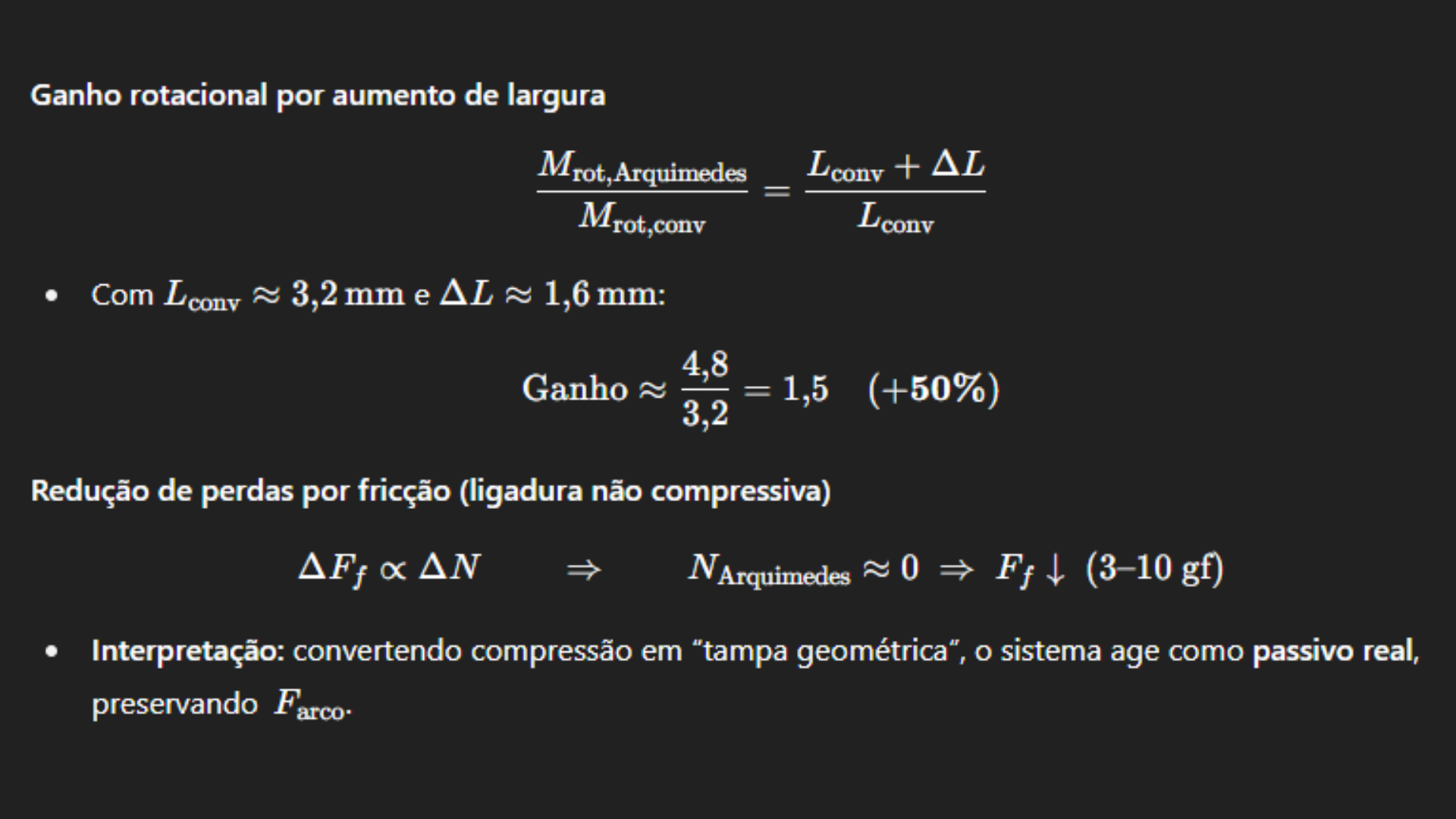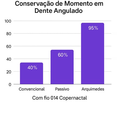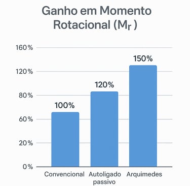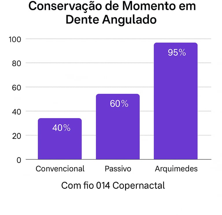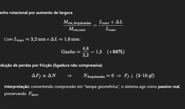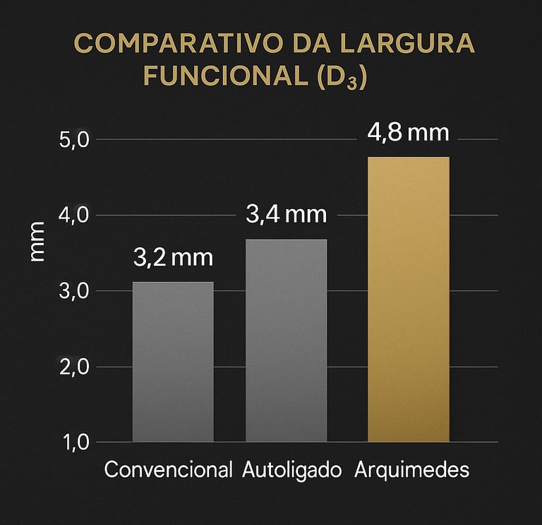Como o Arquimedes System tem D₃ ≈ 4,8 mm contra 3,2 mm dos convencionais, o ganho de torque e controle rotacional é de cerca de +50%.