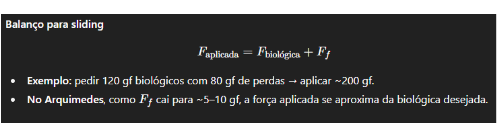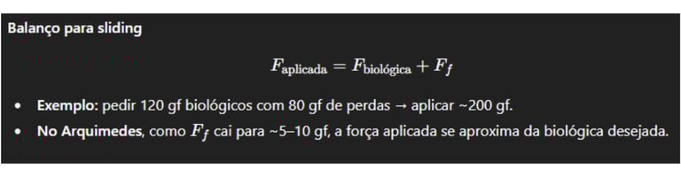 Forças em gf dentro da faixa biológica produzem movimentos mais previsíveis e menos inflamação.