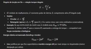 Cada dado apresentado — desde a eficiência de torque até a constância de força — foi interpretado a partir de relações matemáticas consagradas na engenharia de materiais e no comportamento elástico de ligas metálicas.