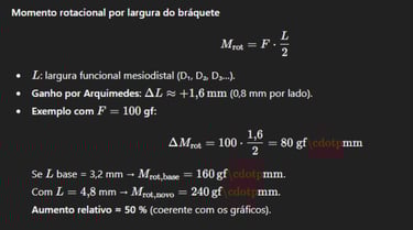 O momento de rotação (Mᵣ) de um bráquete é proporcional à metade da sua largura funcional (D₃/2) multiplicada pela força aplicada.