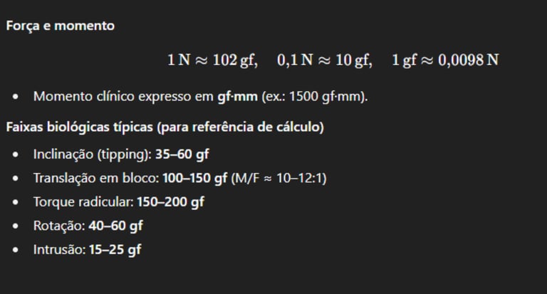 Converter todas as grandezas em gramas-força (gf) e gf·mm, tornando os resultados comparáveis na prática clínica;