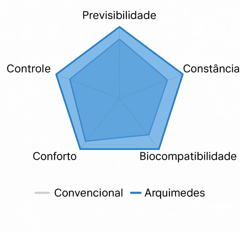 Essas relações demonstram que o desempenho superior do Arquimedes System não decorre de retórica comercial, mas de consequências diretas das leis da física aplicadas à ortodontia.